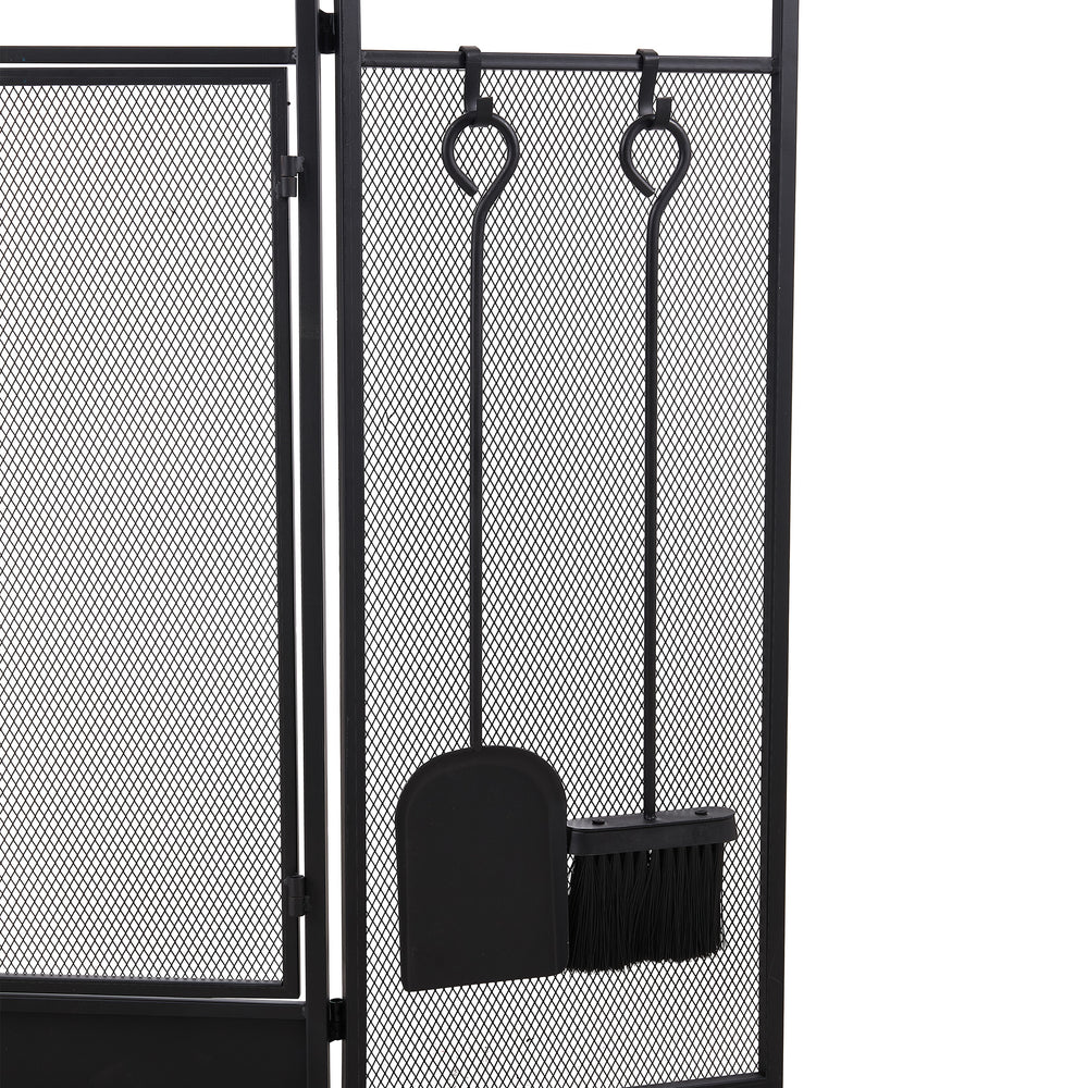 Iron Fireplace Screen with 4-Piece Tool Set Black Powder Coated – 122x1.3x80cm