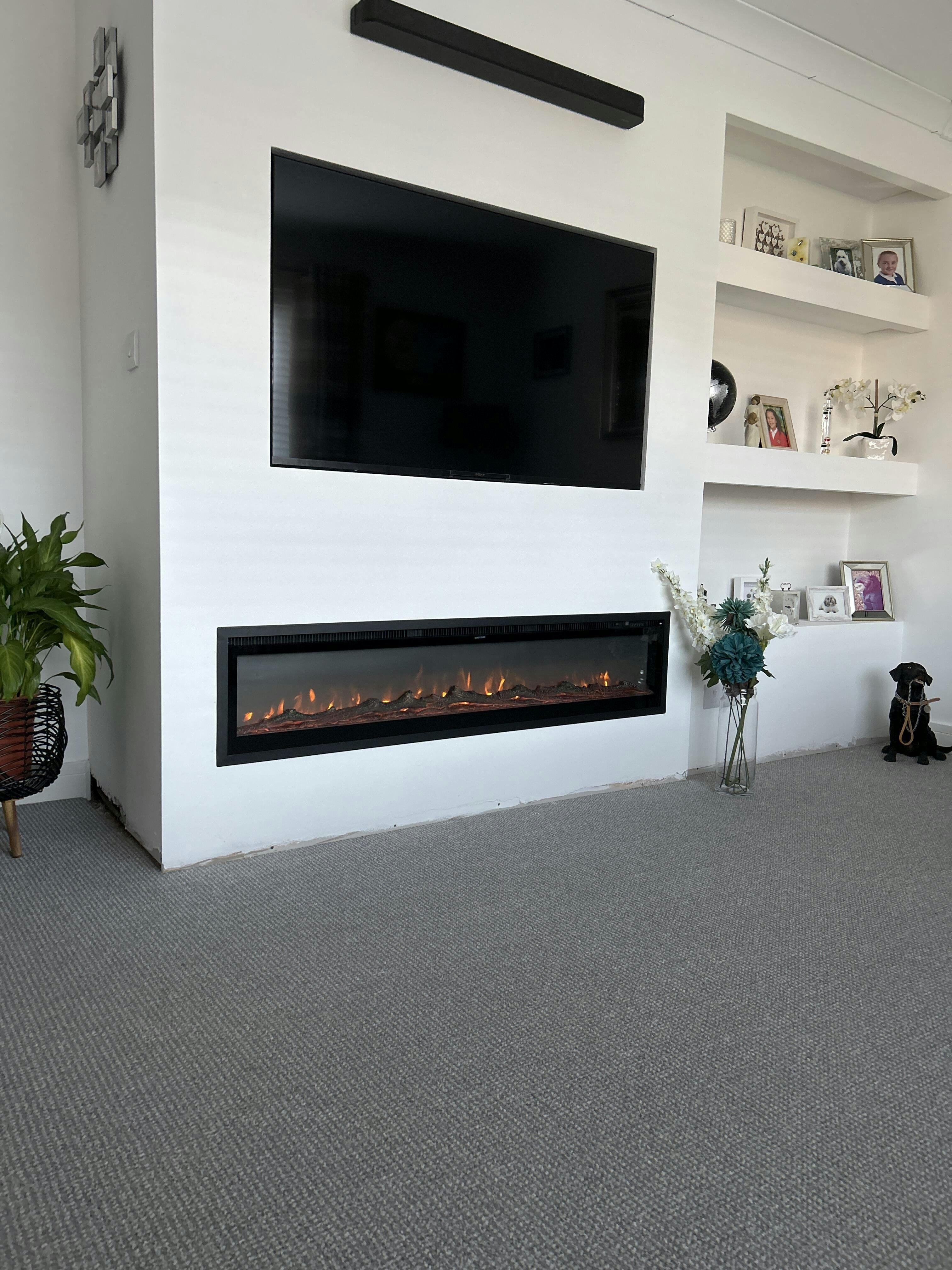 Media Wall Display: Elevate your media wall with vibrant, lifelike flames that enhance the look and feel of your entertainment space, creating a cozy focal point for TV setups.