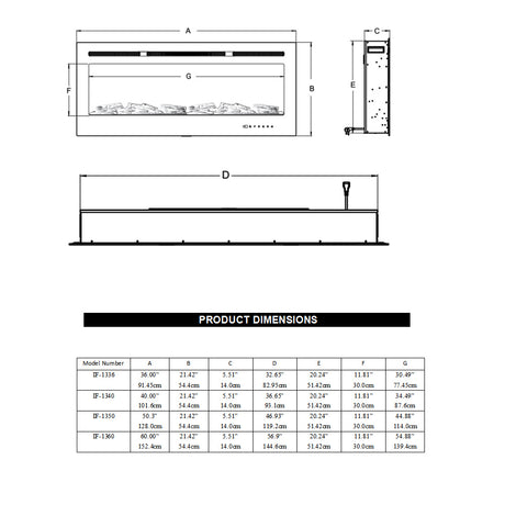 Versatile Media Wall Electric Fireplace Insert | LED Realistic Flame Effect with Remote Control