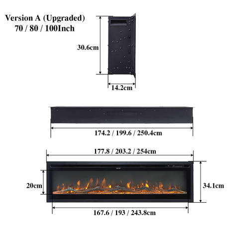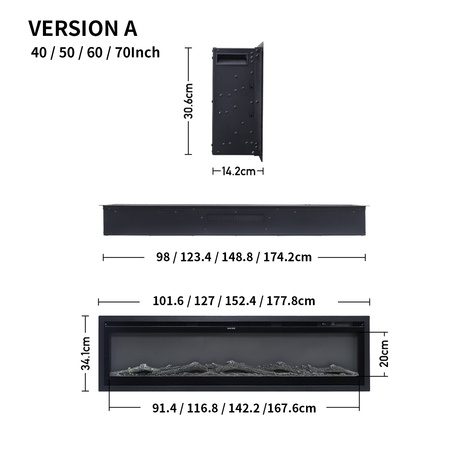 40/50/60/70/80inch Remote-Controlled LED Wall Mounted Electric Fireplace