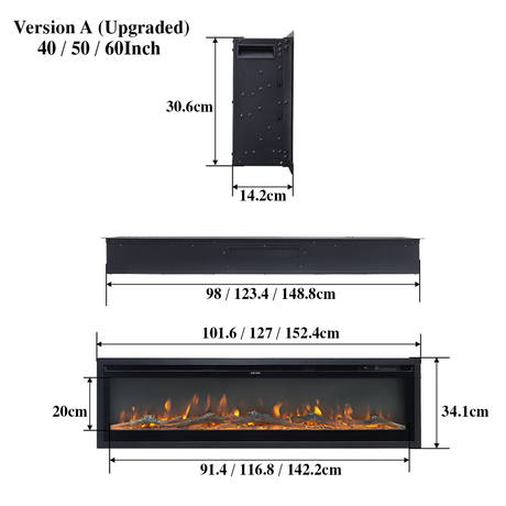 40"/50"/60" LED Flame Wall-Mounted Electric Fireplace with Remote