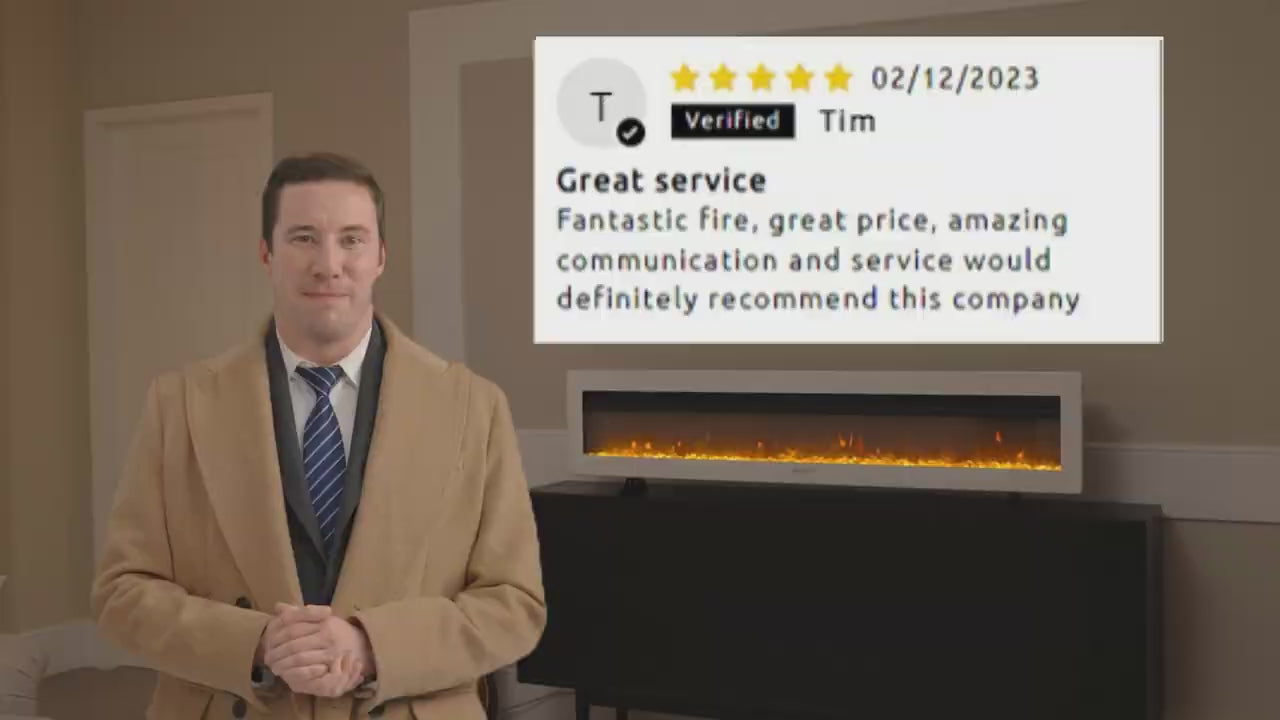 - Customizable Flames: Choose from multiple flame colours and brightness levels for a personalized modern fireplace look.
