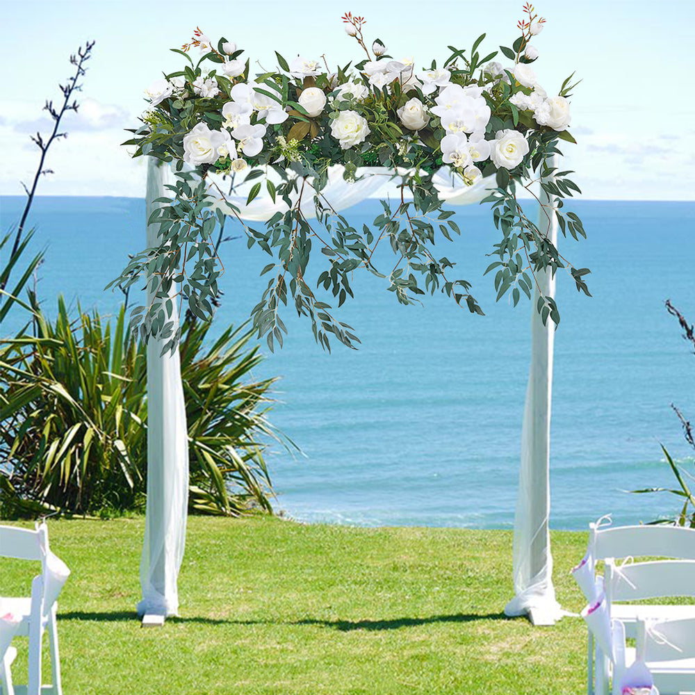 Artificial Decorative Border - White Flowers with Green Leaves Ideal for Wedding Mantelpiece and Interior Decor