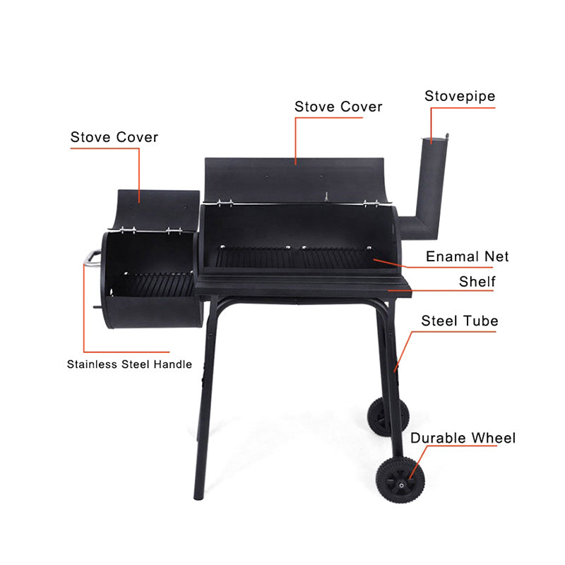 With front and bottom BBQ shelves grills, you get convenient storage for utensils and ingredients. The built-in thermometer helps monitor cooking temperatures, and two large wheels make this portable BBQ grill easy to move.