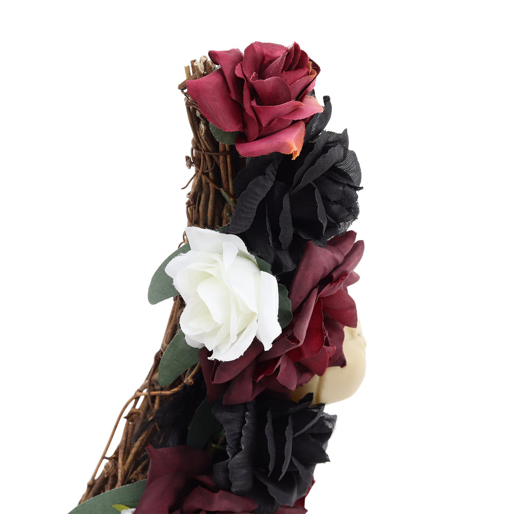 Showcasing skulls nestled among vibrant red and black roses, our Halloween wreath effortlessly captures that eerie atmosphere you're looking for. Even better, it includes a 2-meter LED light string to enhance its spooky charm at night. This unique Halloween wreath sets the stage for a hauntingly festive Halloween party. Perfect for hanging on your front door as an eye-catching decoration.